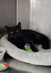 Santo - Yes, this is one cool cat! Santo had entropion of his lower left eyelid. This is where the eyelid turns in and the eyelashes constantly rub the eye. Surgery was a success and he feels so much better. He now has two good eyes and a loving heart searching for his forever home.